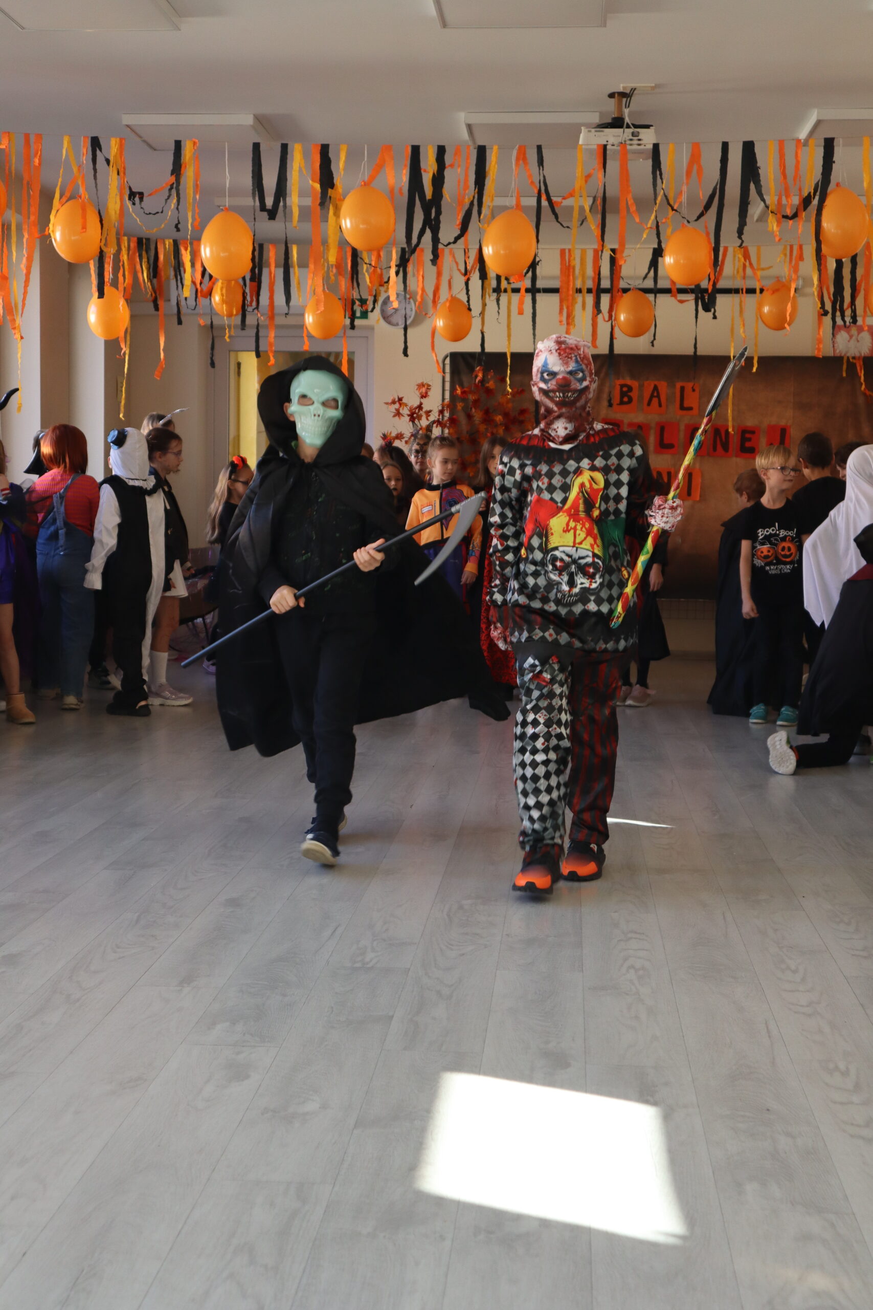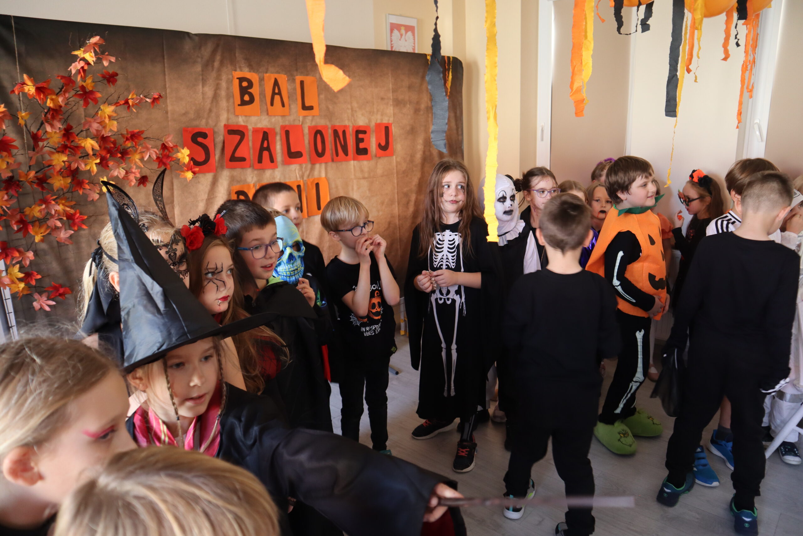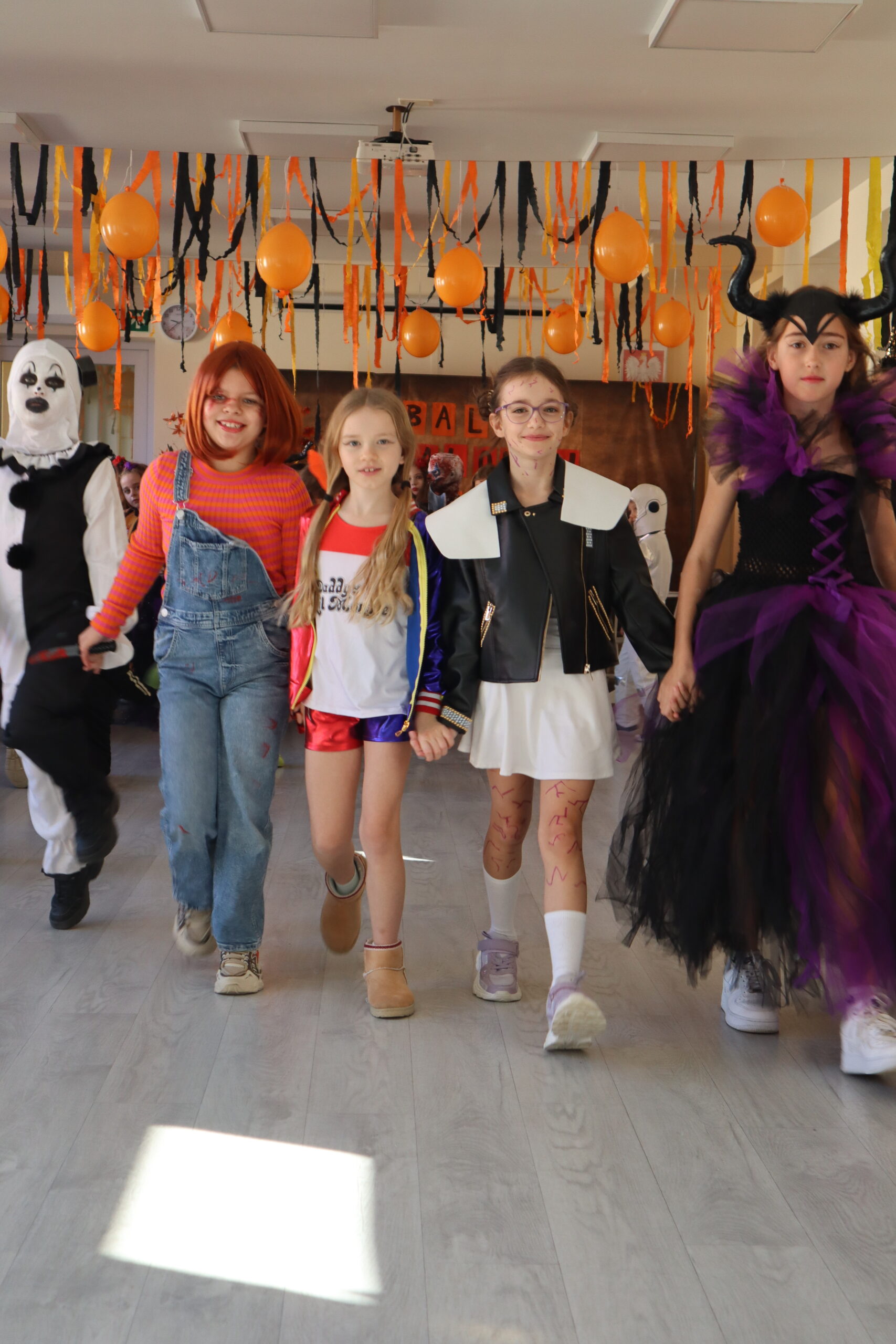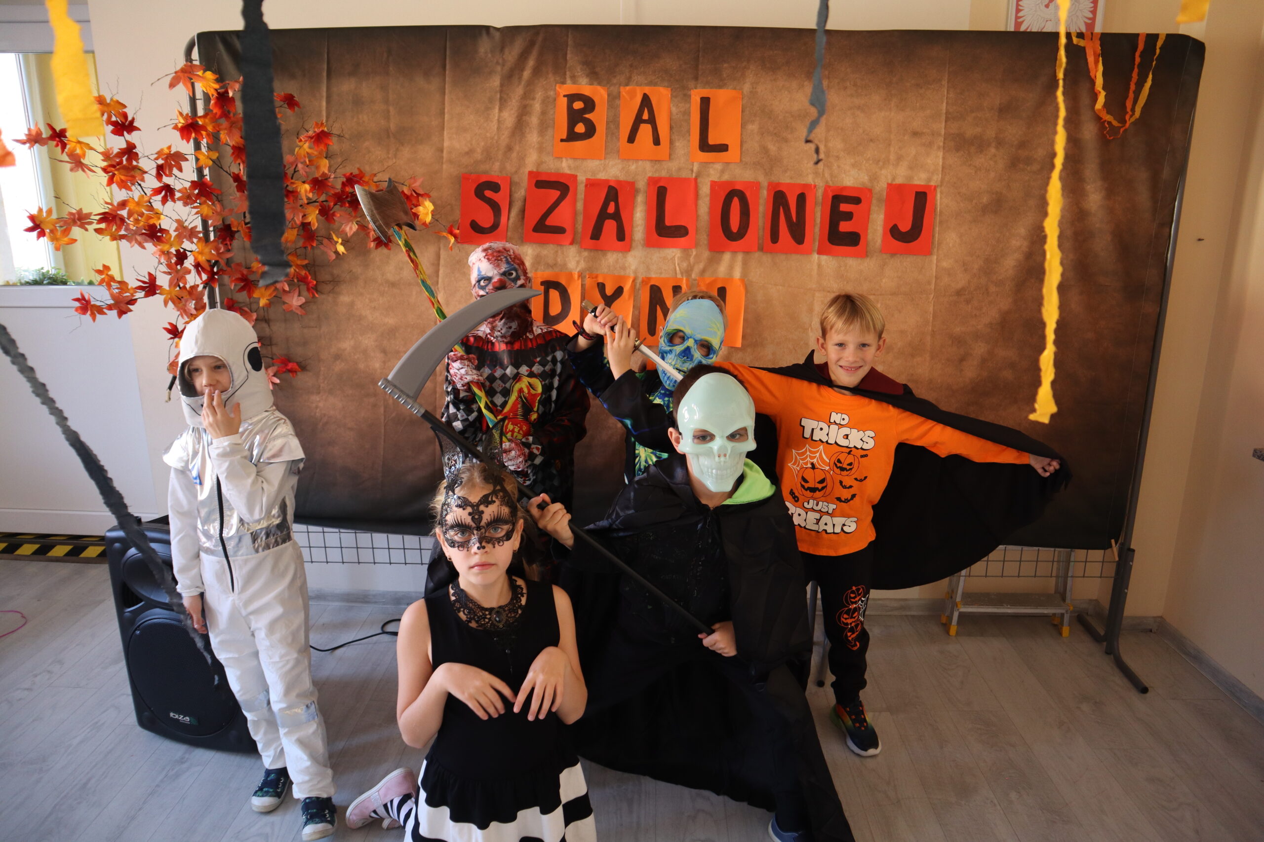 Na szkolnej auli królowały kreatywne stroje – dynie, czarodziejki, potworki i wiele innych fantastycznych postaci. Nie zabrakło tańców i gier, a dziewczynki z klasy 3 wcieliły się w prowadzące zabawę, pokazując układy taneczne, które następnie wykonywały wszystkie dzieci!