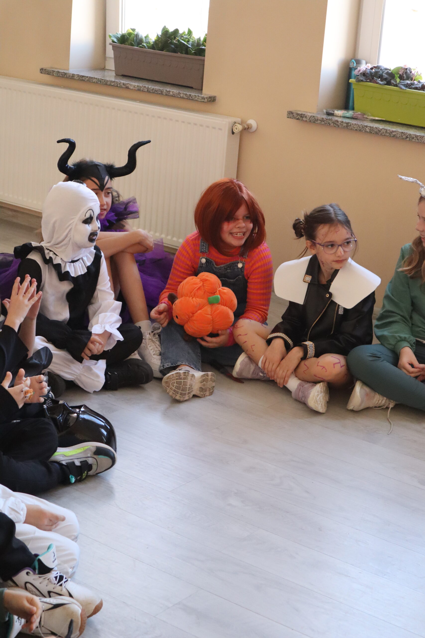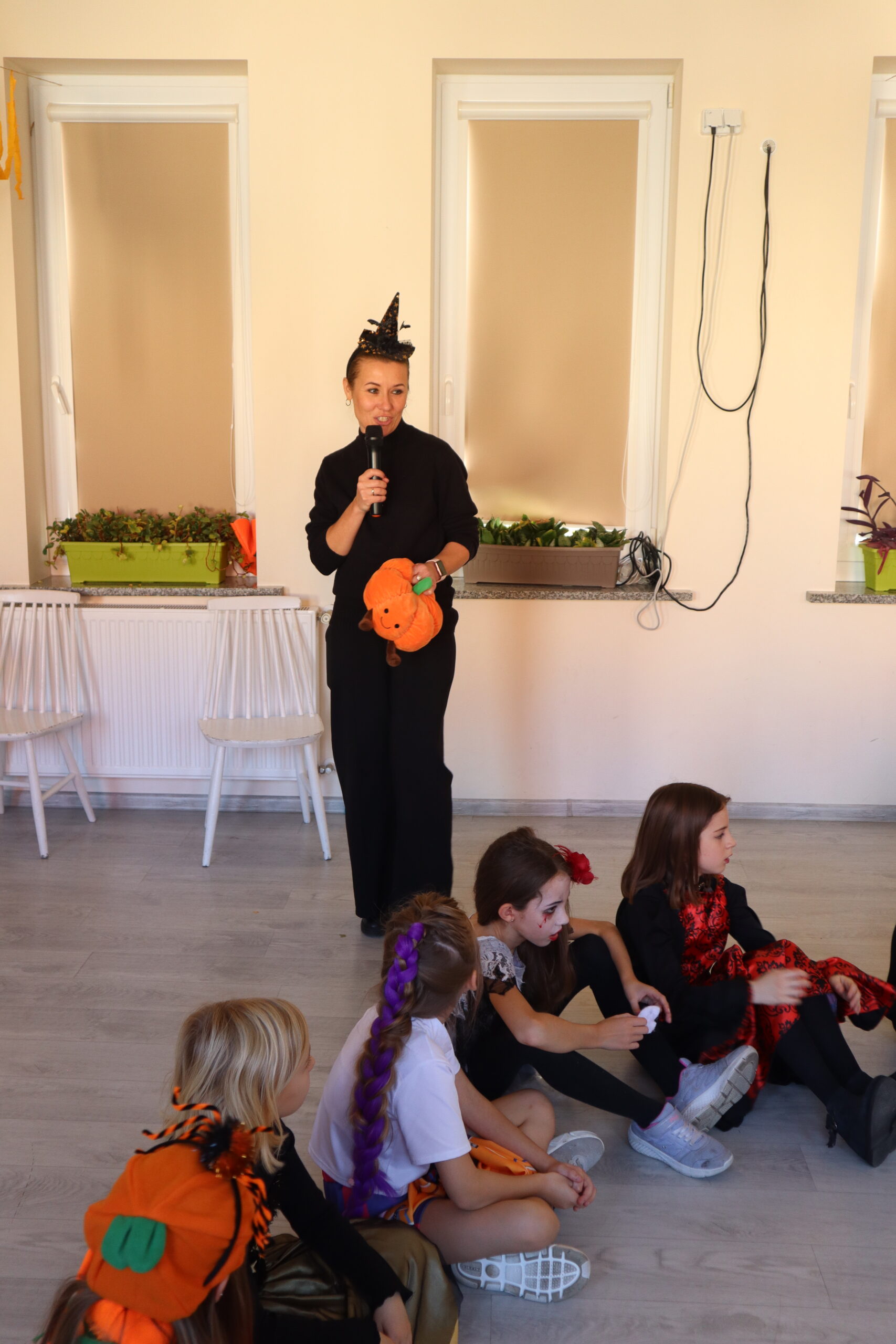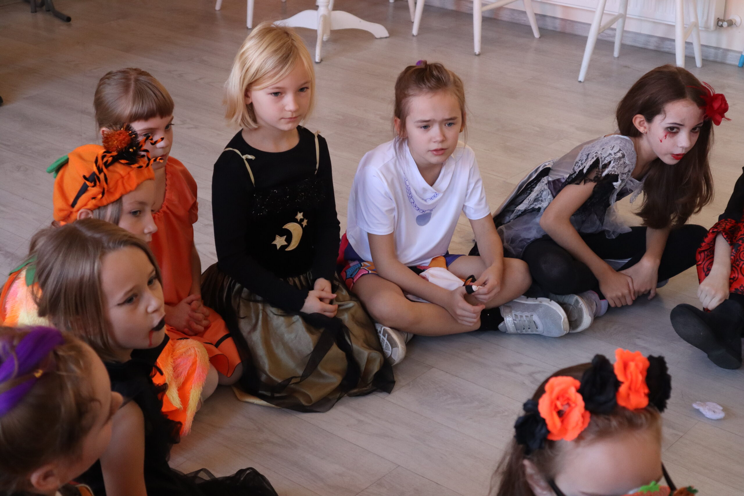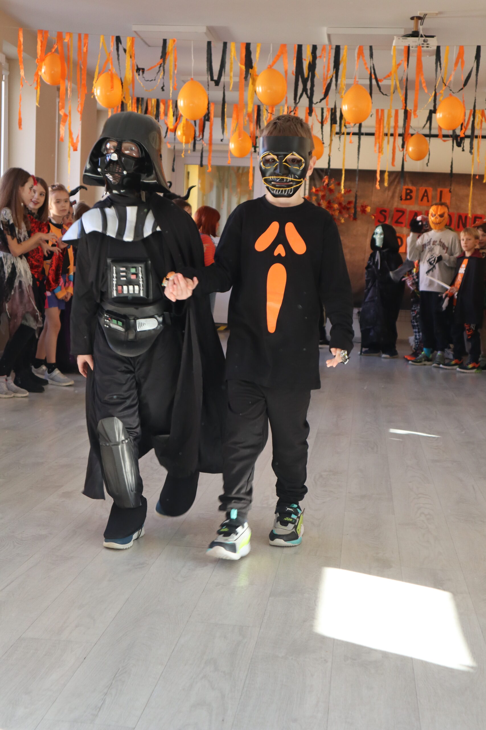 Na szkolnej auli królowały kreatywne stroje – dynie, czarodziejki, potworki i wiele innych fantastycznych postaci. Nie zabrakło tańców i gier, a dziewczynki z klasy 3 wcieliły się w prowadzące zabawę, pokazując układy taneczne, które następnie wykonywały wszystkie dzieci!