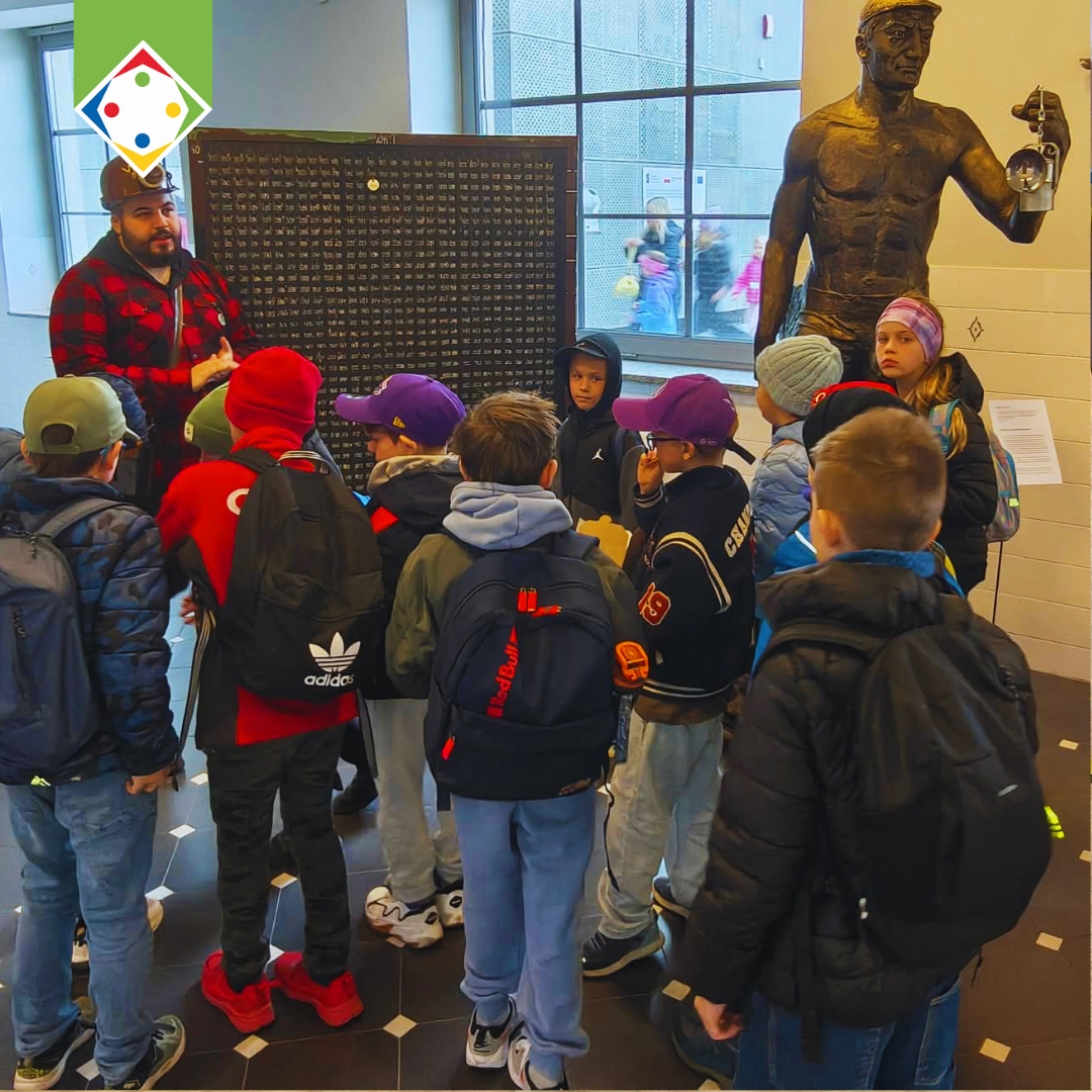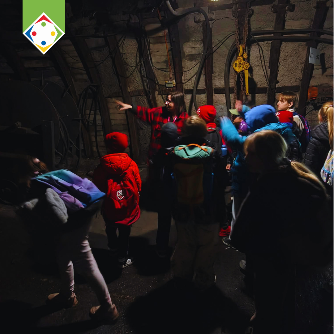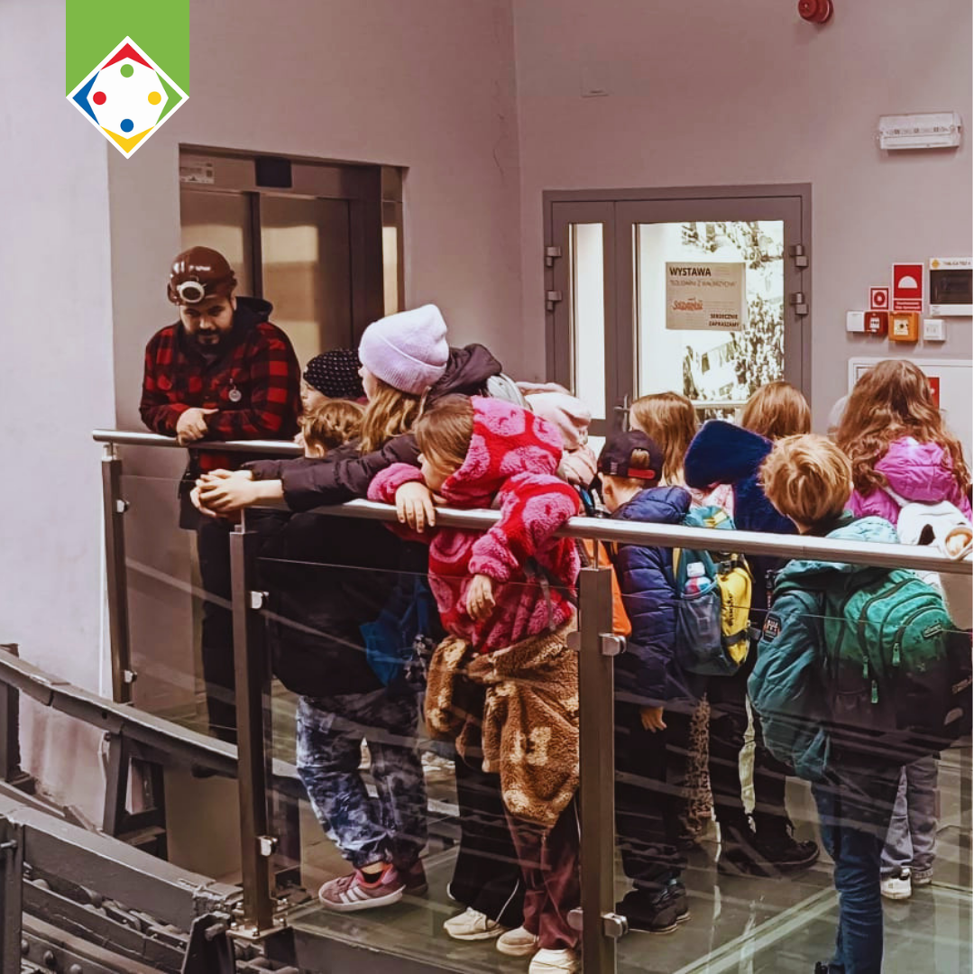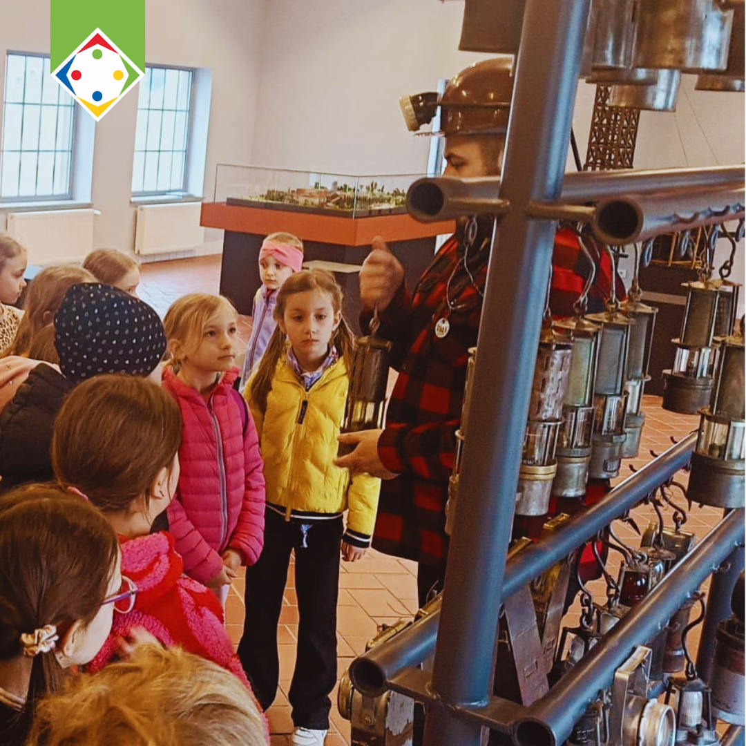 W części poznawczej dzieci zwiedziły także ekspozycję muzealną w budynku łaźni i lampowni oraz nadszybie, poznając historię górnictwa i codzienność pracy górników.