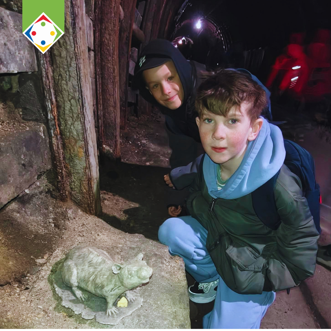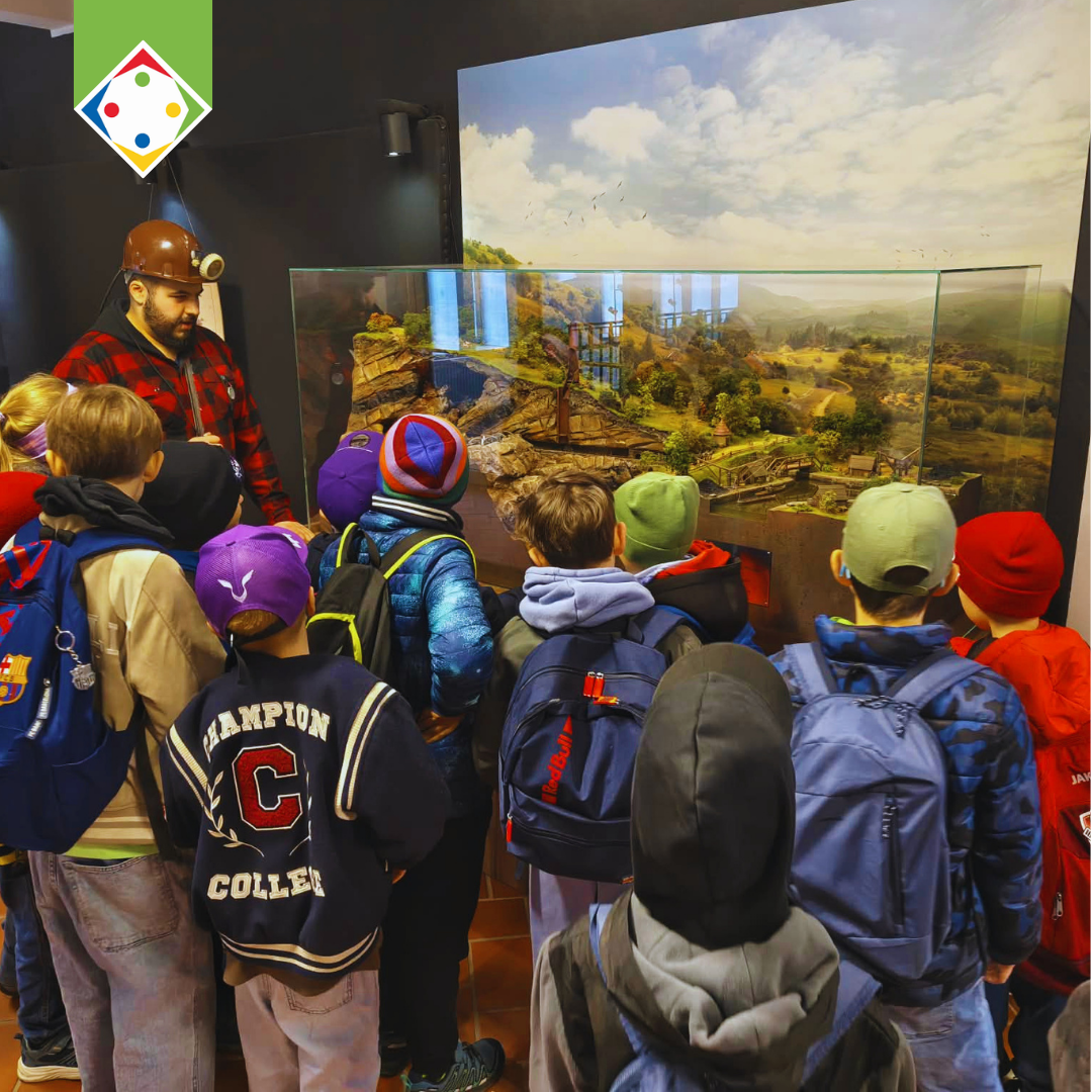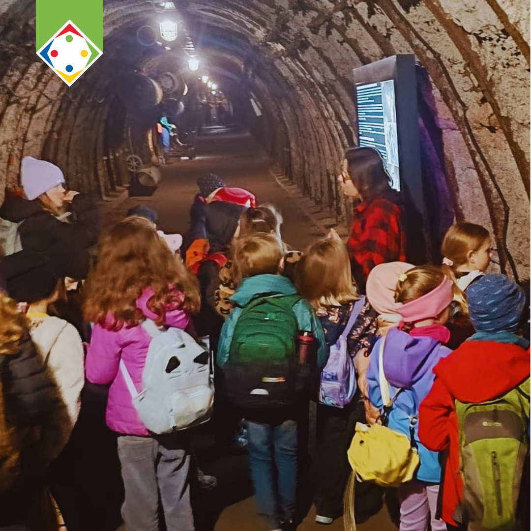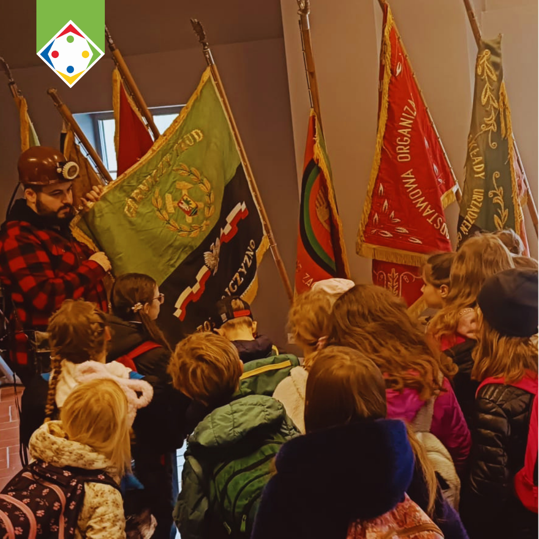 W części poznawczej dzieci zwiedziły także ekspozycję muzealną w budynku łaźni i lampowni oraz nadszybie, poznając historię górnictwa i codzienność pracy górników.