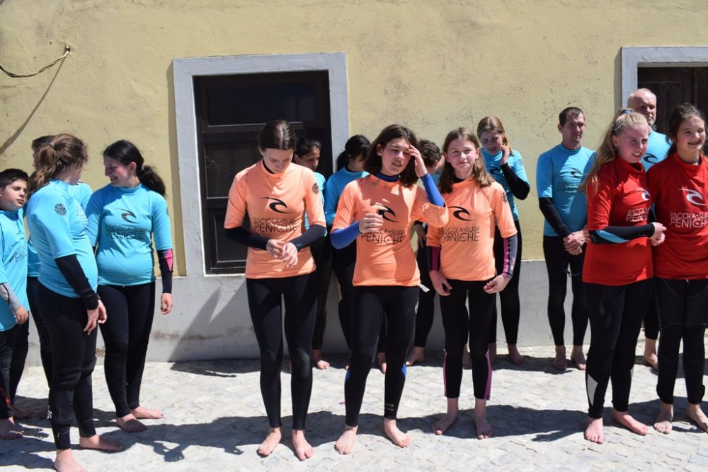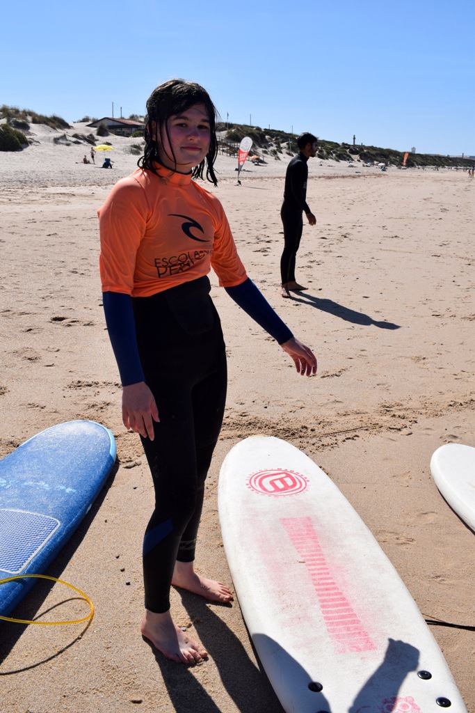 Choć matematyka była przewodnim motywem wizyty , to oczywiście mieliśmy okazję do  poznania najważniejszej atrakcji Peniche – surfingu.  Ochotnicy wzięli udział w lekcji surfowania. Pewnie wszystkim  wydaje się, że to nie tylko piękny ale i łatwy sport. Śmiałkowie przekonali się jednak jak trudno ustać na desce, choćby parę sekund, kiedy nadpływa fala za falą.