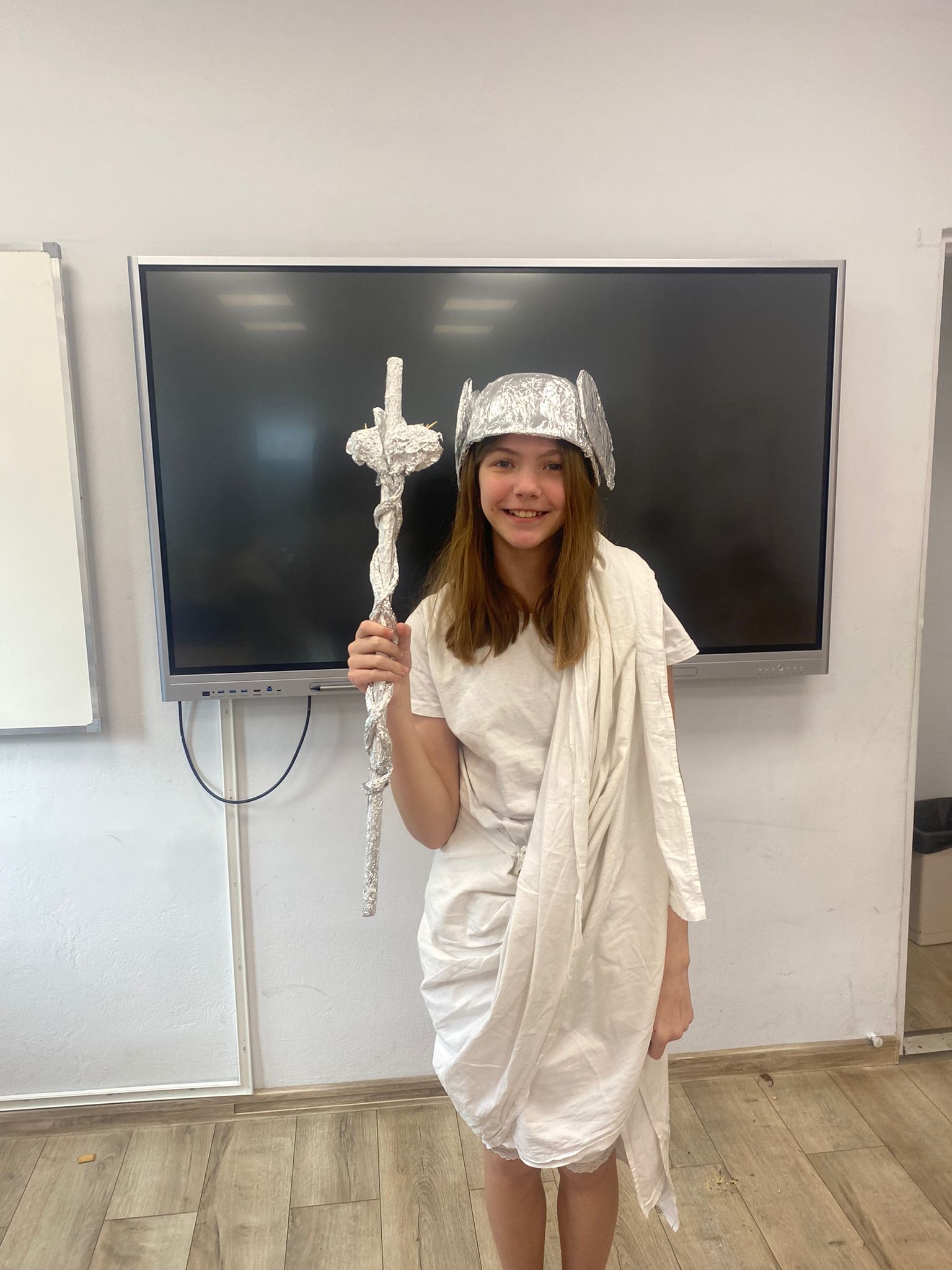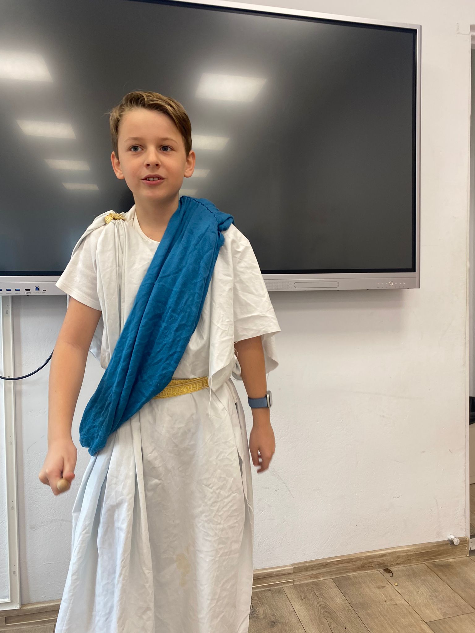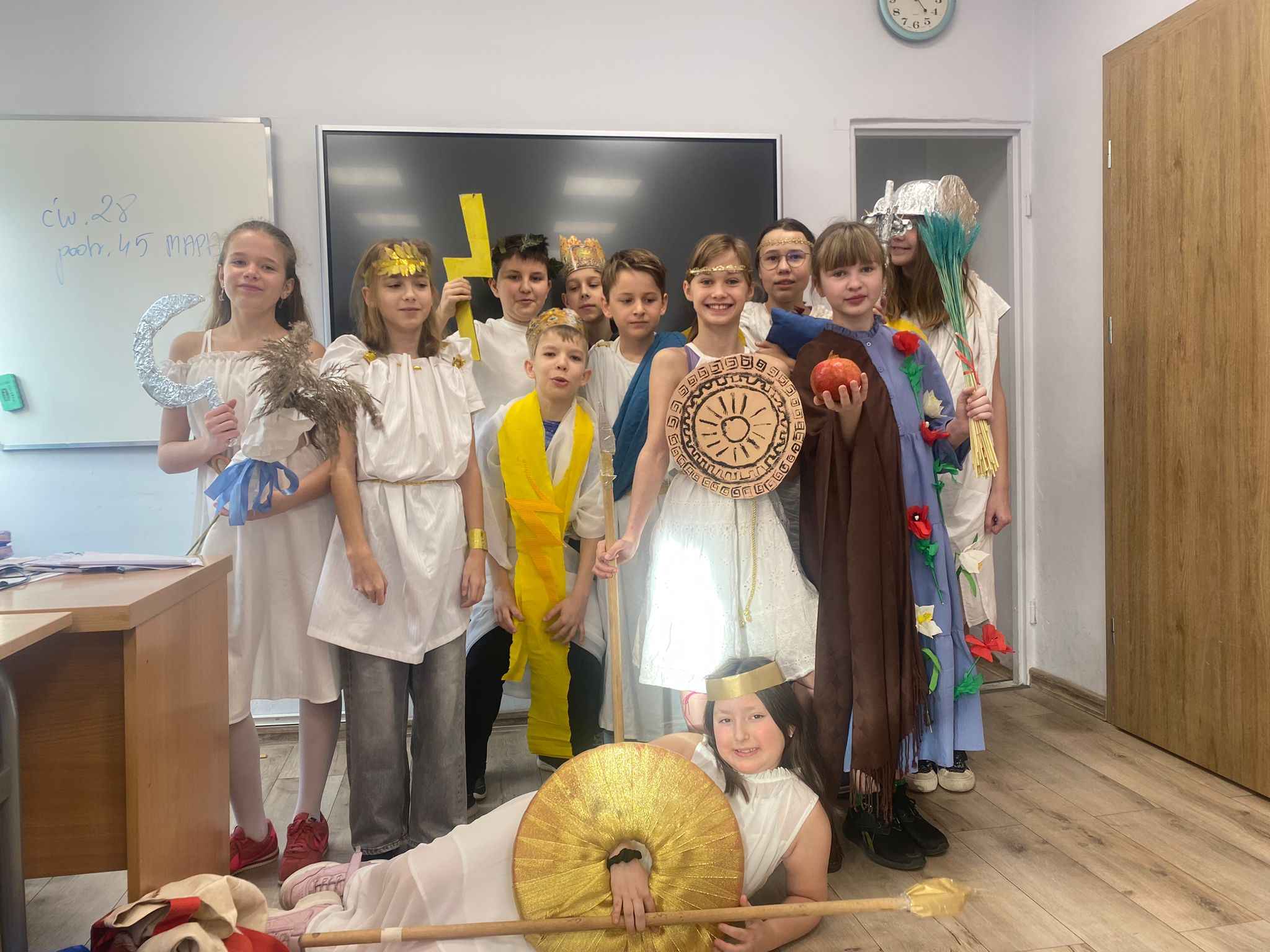 Uczniowie klasy V rozpoczęli omawianie mitologii w wyjątkowy sposób. Zamiast tradycyjnej lekcji, sala lekcyjna zamieniła się w Olimp – uczniowie przebrali się za wybrane bóstwa greckie.