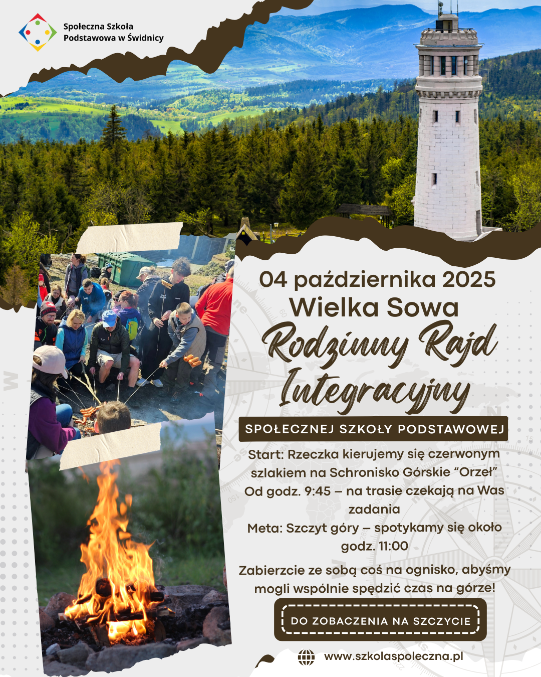 Startujemy z parkingu w Rzeczce i kierujemy się na Schronisko Górskie „Orzeł”. Od godz. 9:45 na trasie będą czekały na Was różne zadania. Około 11:00 spotykamy się wspólnie na szczycie góry!