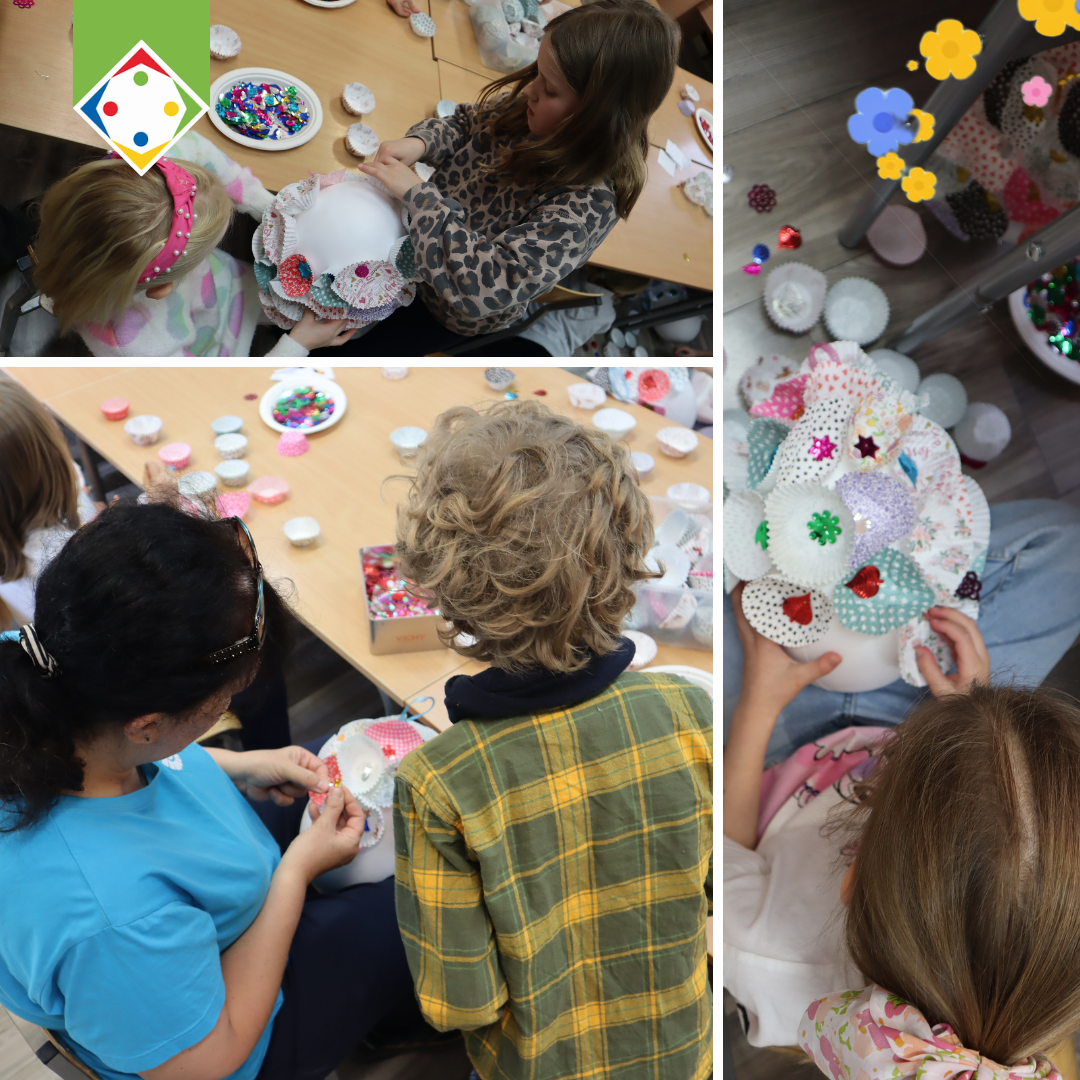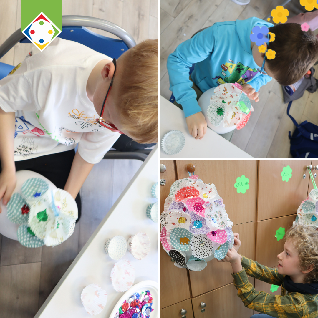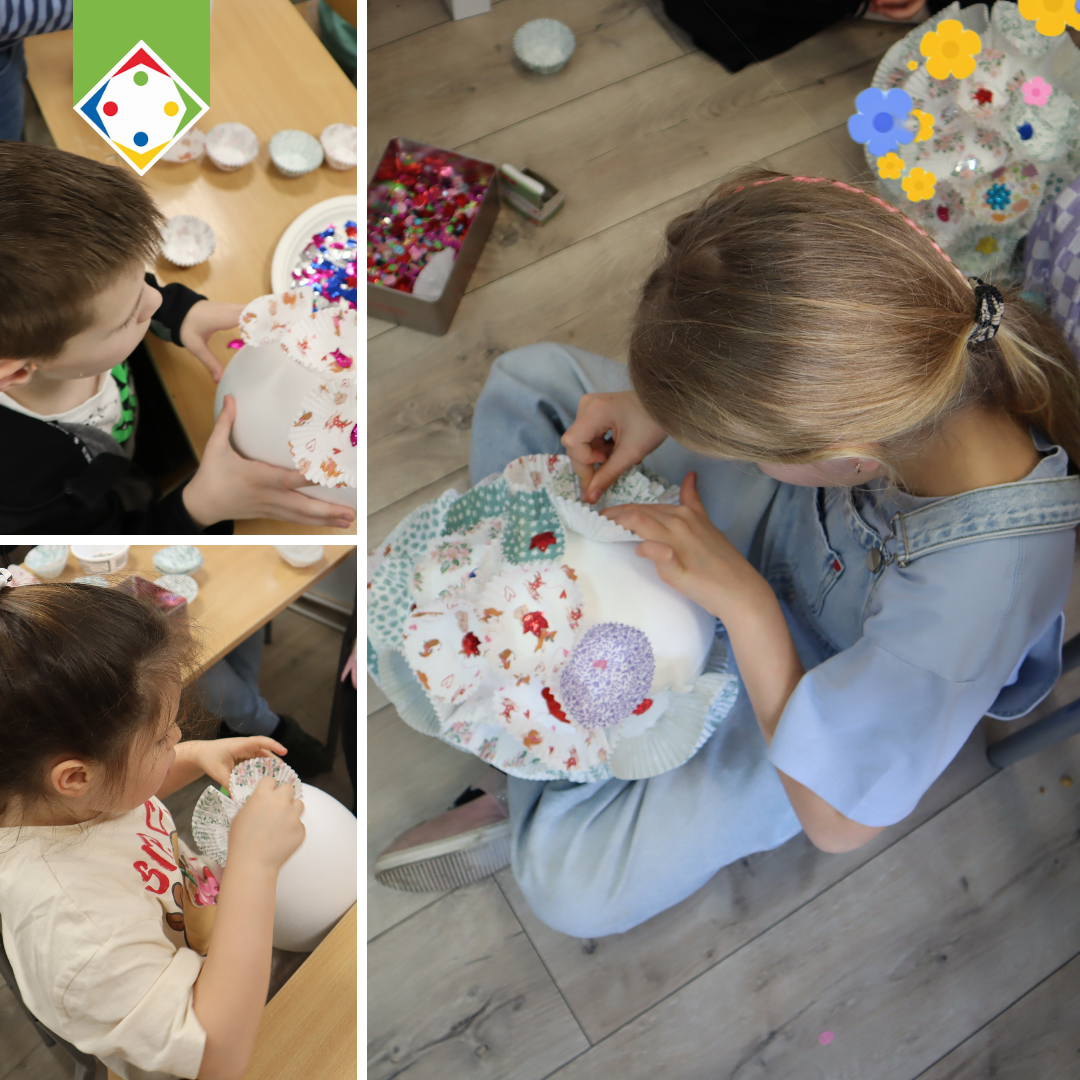 Podczas zajęć uczniowie wykonali duże, 30-centymetrowe pisanki, ozdobione w kreatywny sposób przy użyciu m.in. papilotek do muffinek.